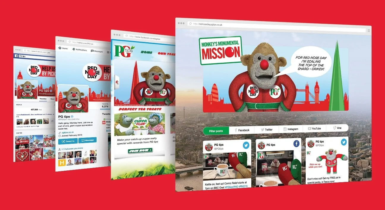 I worked closely with multiple stakeholders (Comic Relief, PG tips, The Shard) and multiple agencies (comms, PR, media) to create hundreds of executions across a wide range of channels.